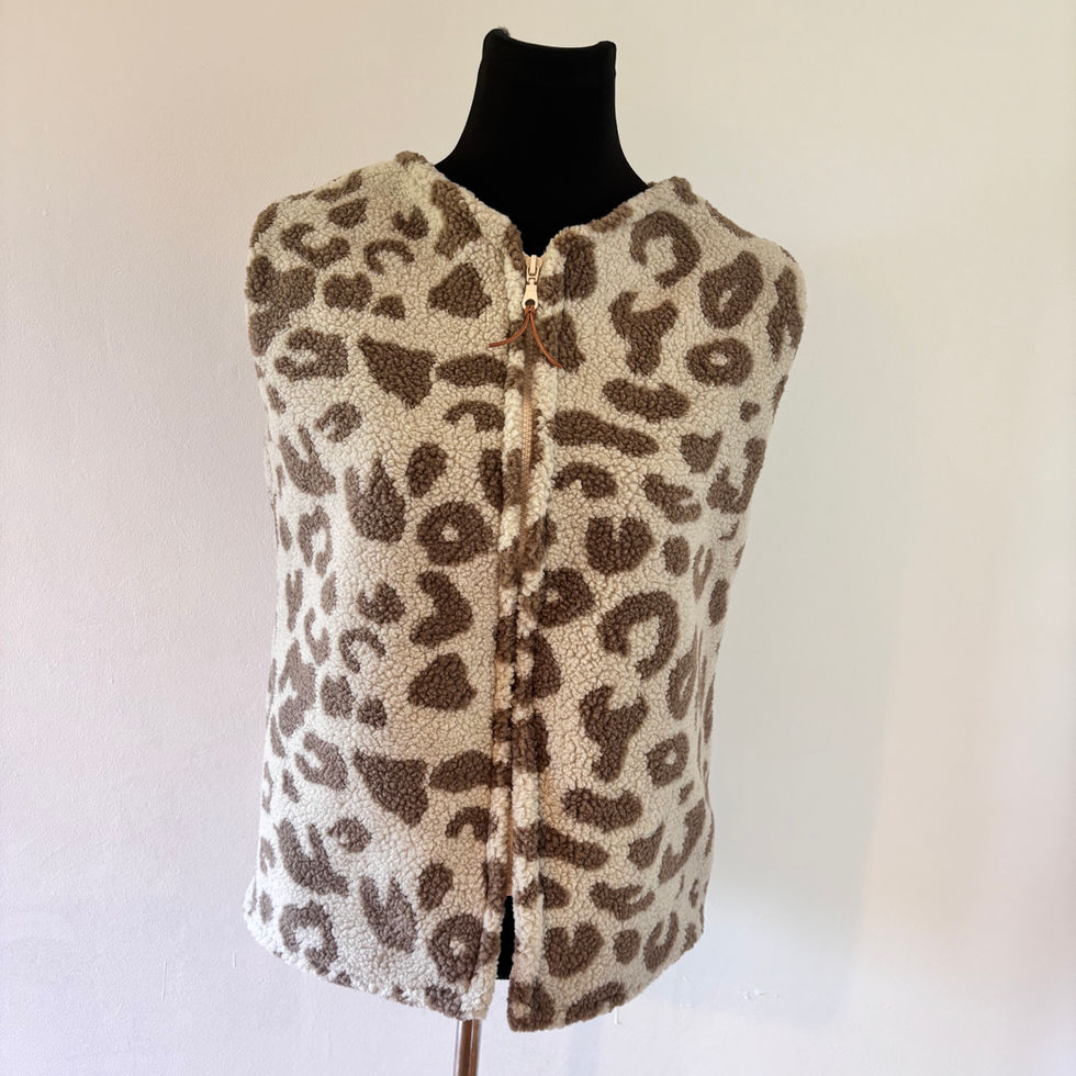Diese Teddy-Weste besteht aus kuscheligem Motivteddy und ist mit beigem Baumwolljersey gefüttert. Sie ist der perfekte Begleiter für den Übergang . Die Weste wird mit einem Reissverschluss geschlossen.